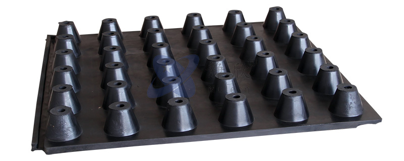 MUTE型橡膠隔振隔聲墊主要由天然合成橡膠,中間錦綸尼龍骨架加強層通過高溫硫化模壓而成,下部凸臺設有孔,能起到一定的空氣隔振和阻尼作用,固有頻率較低,隔振隔聲效果較好,主要用于MUTE浮筑層和動力設備的隔振隔聲,能極大限度的縮減,隔離建筑物結構上的振動,噪聲的傳遞污染。 產品單塊尺寸為500*500mm,可大面積組合鋪設,也可根據工程需要任意切割大小,可耐酸、堿、油、防腐、防霉、防濕、防老化,耐溫范圍-20-90℃,阻尼比0.08 。