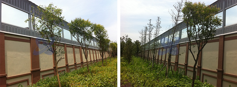 由于小區周邊噪聲超標,影響居民的正常生活,因此采用了一種吸聲效果良好的微穿孔式吸聲板和安全玻璃屏體組合,從而使噪聲達到了2類聲環境質量標準,為居民創造一個舒適寧靜的生活。